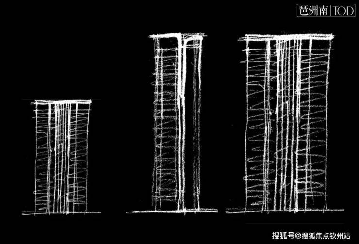 琶洲南TOD项目超平面外立面,以大量玻璃幕墙、航空铝板设计,打造更具国际化的建筑形态。住宅群呼应珠江新城东、西刷塔360米高度,政府规划南地块办公大楼高约250米,内部规划住宅群高约150米,与CBD建筑群形成起伏天际线,家就是城市封面的一部分。