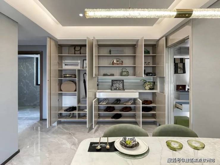▶超容收纳模块:可放下约70双球鞋的鞋柜、主卧衣柜约68个登机箱的收纳容积,可以叠挂至少220件衣服,全屋赠送柜体收纳空间高达6m³(含橱柜、浴室柜)。