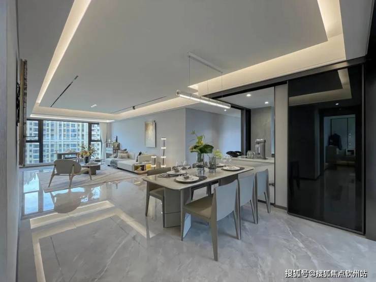 ▶升级二:打开墙面封闭,加入厨房导台及开放式金属推拉门,打通LDKG客餐厨阳台一体化,中西厨随意切换,空间美感质感全面提升,更容易地交流互动。