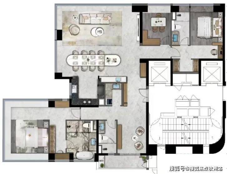 223㎡户型亮点:约8.5m*7.0m端厅,LDK一体化,双套房,主卧三面无柱观景。