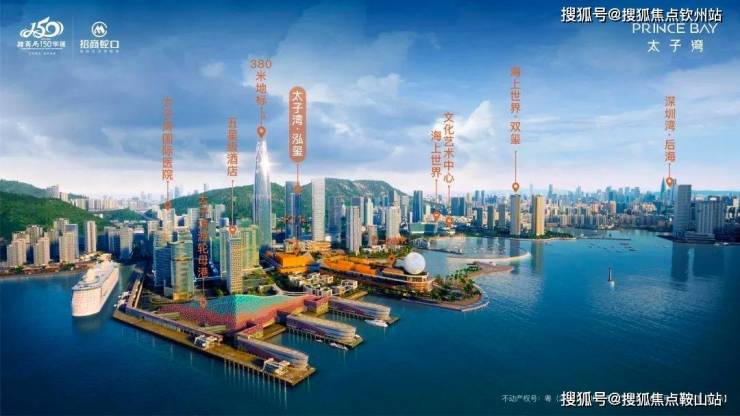 三大核心经济驱动:旅游红利,邮轮母港引擎:漂浮在海上的黄金产业,带动城市第三产业快速发展。实现旅客吞吐量将超过150万人次/年,1:10直接经济效益,带动周边物业价值攀升。总部经济:300m超甲级写字楼,世界商务集群、创意办公,全球名企总部聚集,高净值人才涌入,土地价值日益凸显,总部经济带动区域腾飞,这里是“前海扩容和香港北部都会区”两大重要战略的枢纽,时代赋予这片区域优先发展的红利,南山区也提出以赤湾片区、太子湾片区、蛇口片区为主要承载区,瞄准海洋科技、海洋文化、港口经济等产业方向,打造约12平方公里蛇口国际海洋城