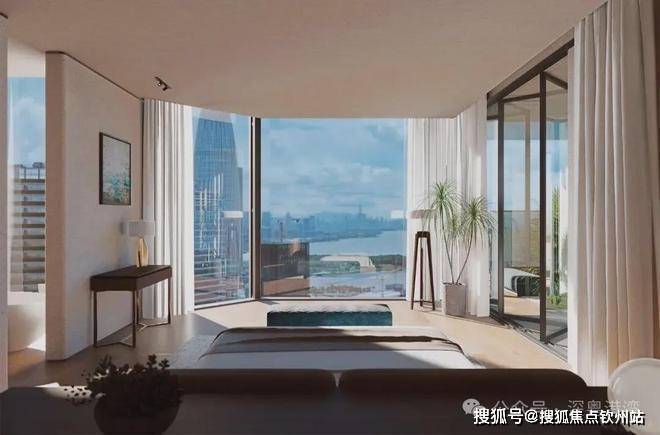 超高层观景面采用落地玻璃,深圳湾视野开阔,无需阳台即可观赏海景。