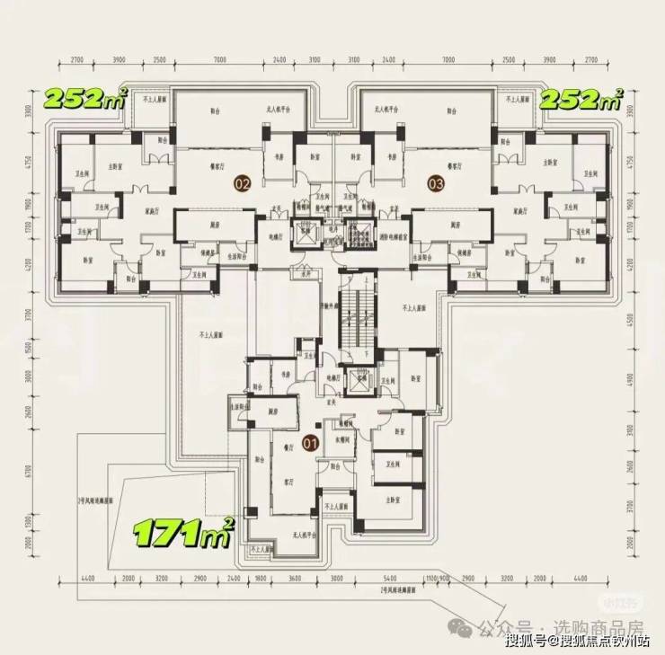产品面积:建筑面积约121-255㎡ 4房至4+1房