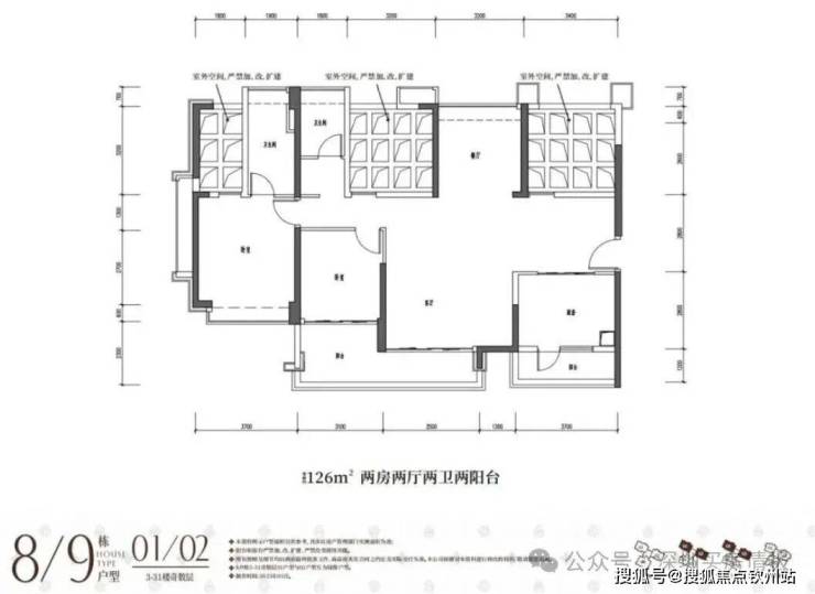 113平3房2卫(客厅开间4米)