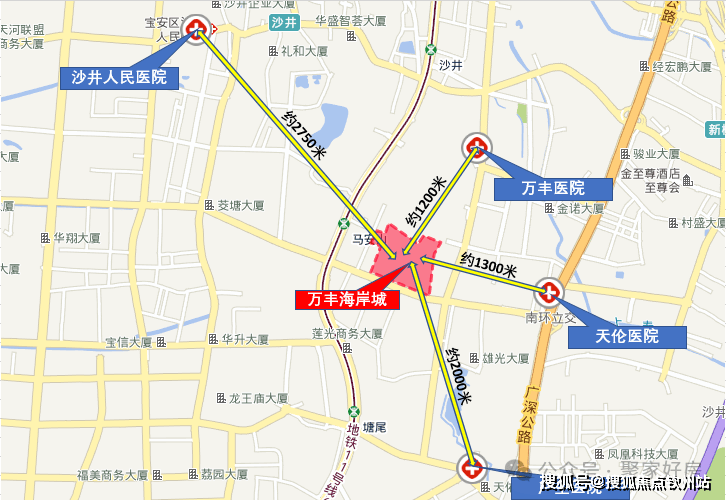 不完全统计,除了项目附近分布的零散商业外,距离项目较近的几个小区也都建有配套商业,例如博林君瑞、丽莎花都等,其中万科星城配建有约26.8万㎡的商业配套。另外沙井形色城,沙井天虹这两处集中式购物中心是片区内运营多年的成熟商业,是目前沙井老城居民购物的主要场所。