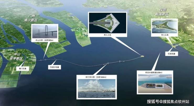 深中通道总长约24KM,计划于2024年建成通车,项目距离深中通道口约2KM,一桥连接深中,20分钟深中生活圈。