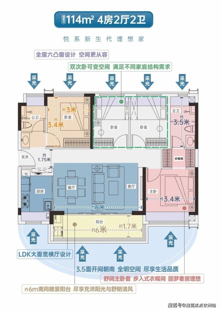 •LDK通厅设计,双开间超6米宽景阳台
