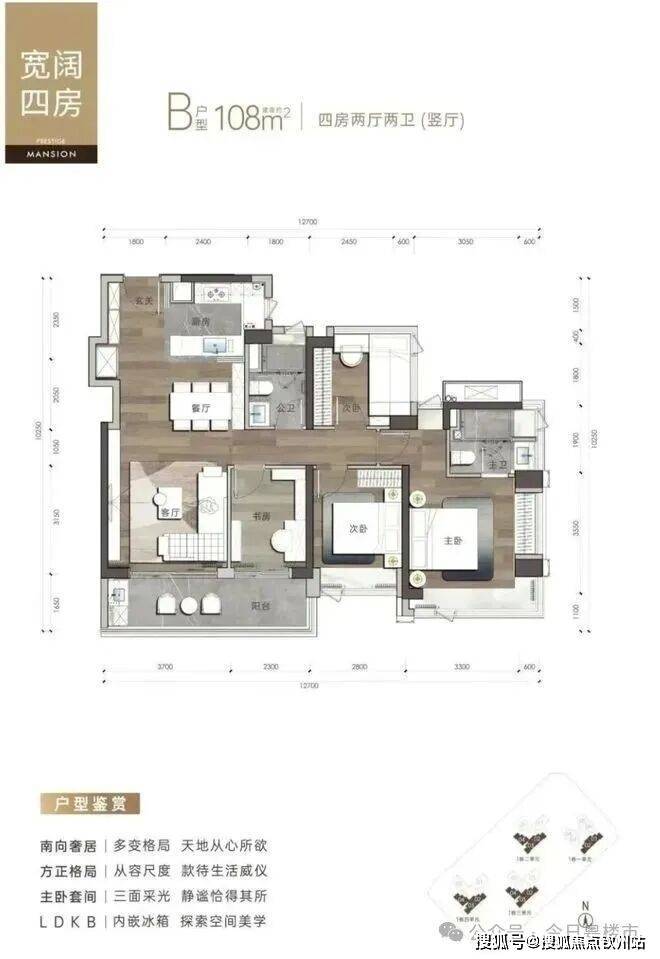 138㎡户型可改造为4+1房,主卧套房设计+6米景观阳台。