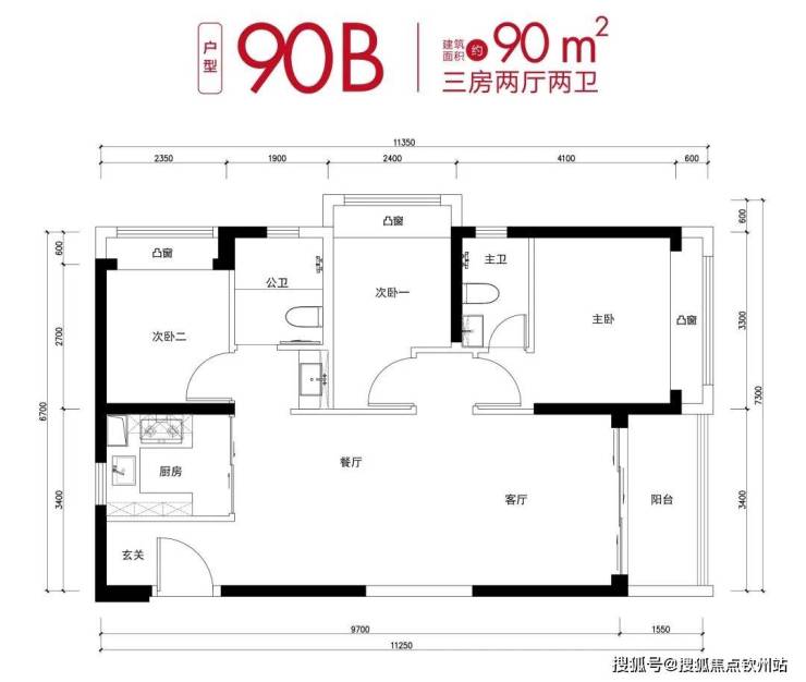 💎户型:建面约70㎡两房、建面约90㎡三房两卫