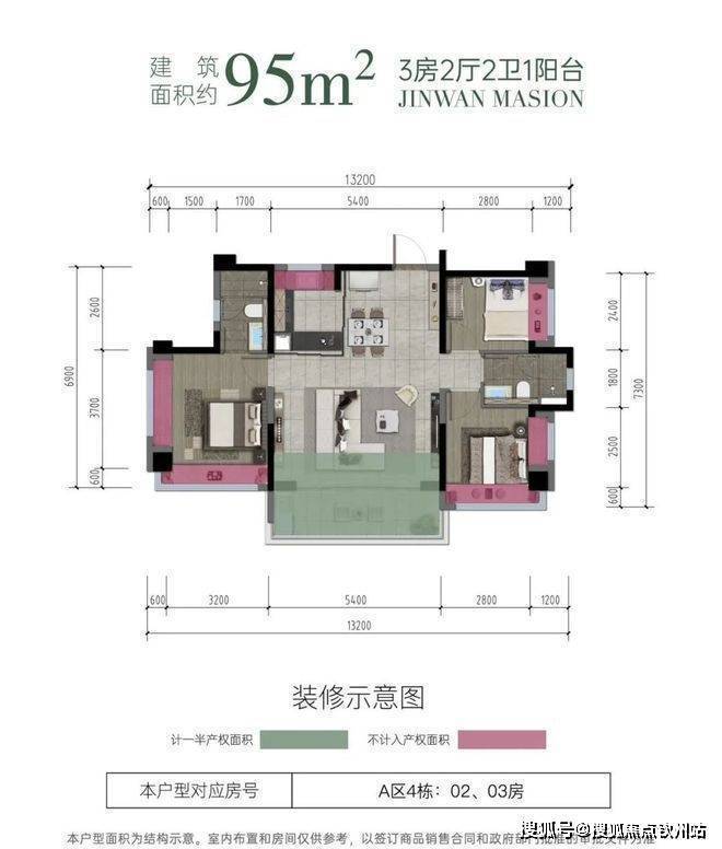 建面约95-98-115㎡三至四房 宽幕高层