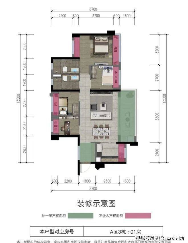 本次加推户型①:A3栋01稀缺极致四房