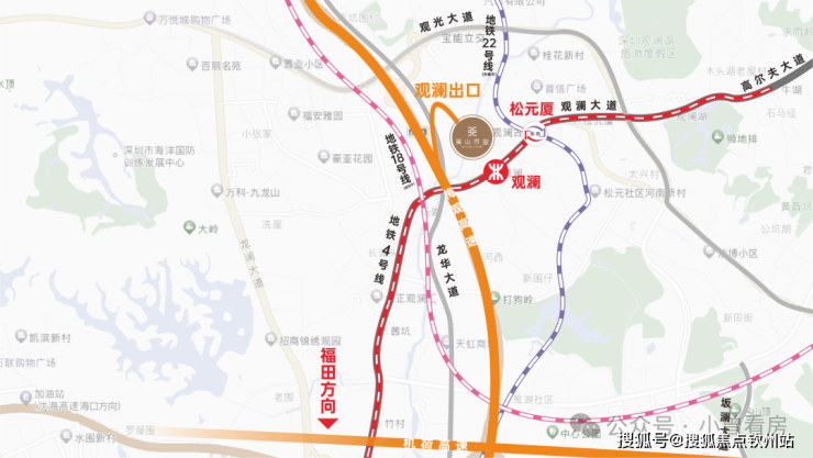 ★项目距离4号地铁线“长湖站”约1.1公里,周边18号线/22号线(在建中),直达北站枢纽、福田CBD;紧邻梅观高速、龙华大道、观澜大道,快速通达全城。