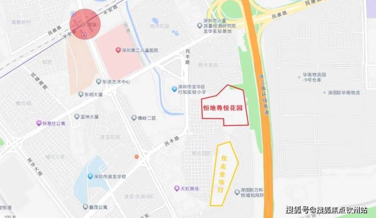 从地理位置上看,恒地尊悦花园位于深圳地铁4号线白石龙站和5号线民治站交汇的三角形区域,民治地铁站步行到项目所在的位置大约需要900米,这也是距离项目最近的地铁站。