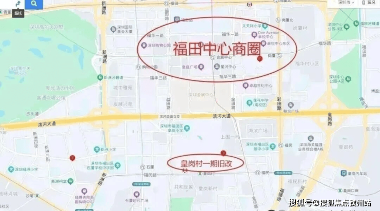 皇岗村改造项目,位于福田福民路与皇岗二街交汇处西北角,紧邻深圳地铁7号线皇岗村站,地处深圳中心的核心腹地。