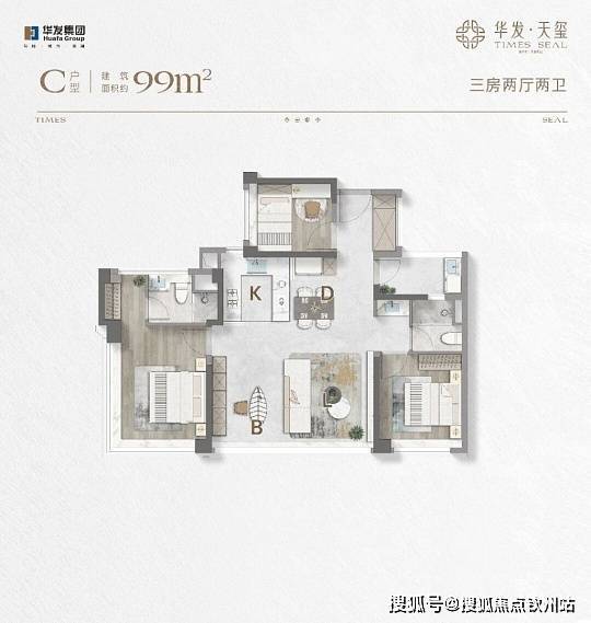 99㎡三房两厅两卫:约215-223 万元(首付 64.5 万起,月供约 7900 元 / 30 年)