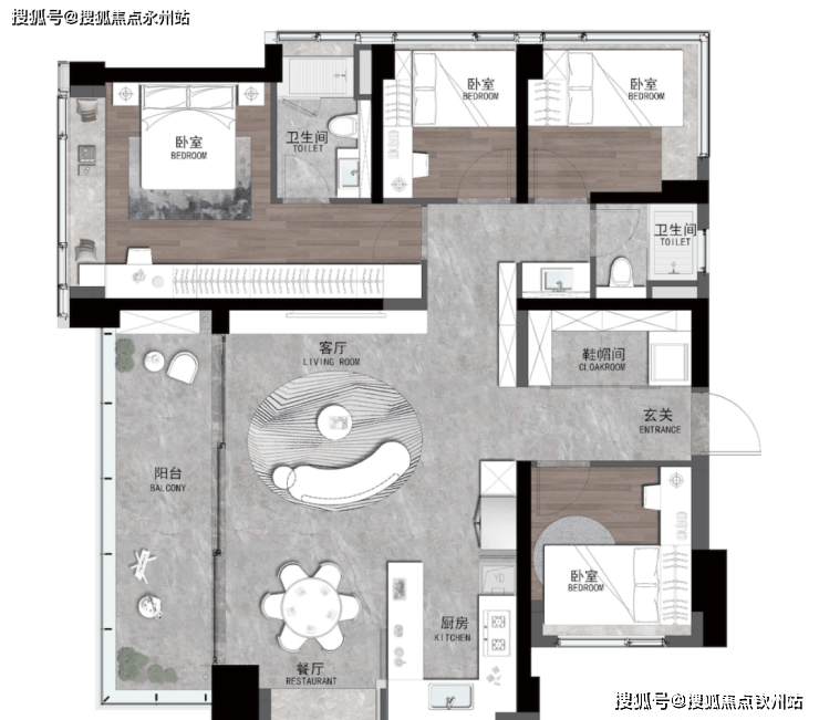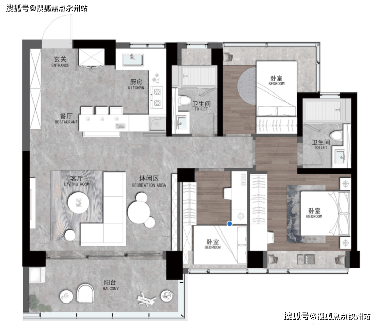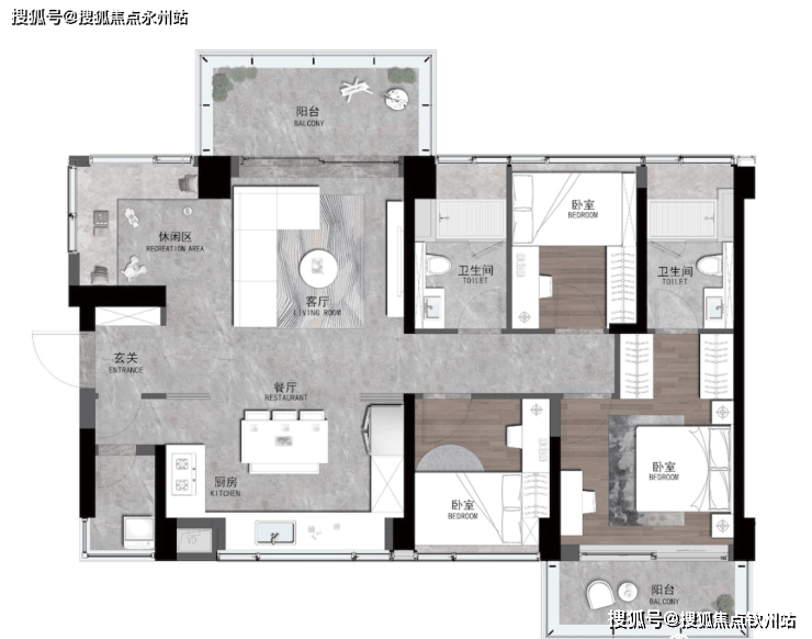 大阳台:运动休闲、种花种草、遛娃晒太阳。