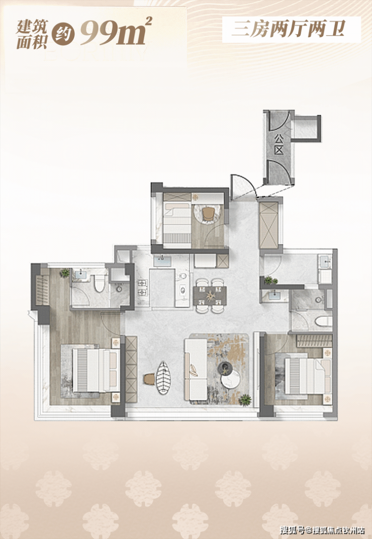户型与价格:主力户型为 99㎡3+1 房两厅两卫和 112㎡四房两厅两卫,得房率约 110%。99㎡户型约 35㎡LDKB 一体化设计,可变双套房,270° 视野,折后总价约 215-223 万元;112㎡户型约 16 米通风面,户户端户,28㎡行政级主卧套房(价格已售楼处为准,资料取自网络)