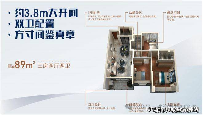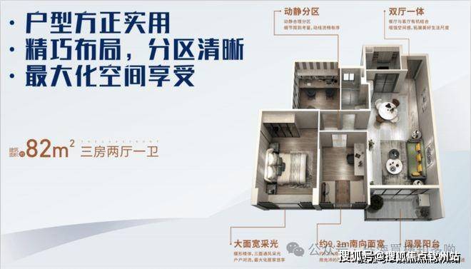 蝶形楼体,270°三面采光通风;全明通透户型,功能分区合理,品质生活从容有度