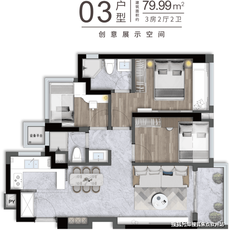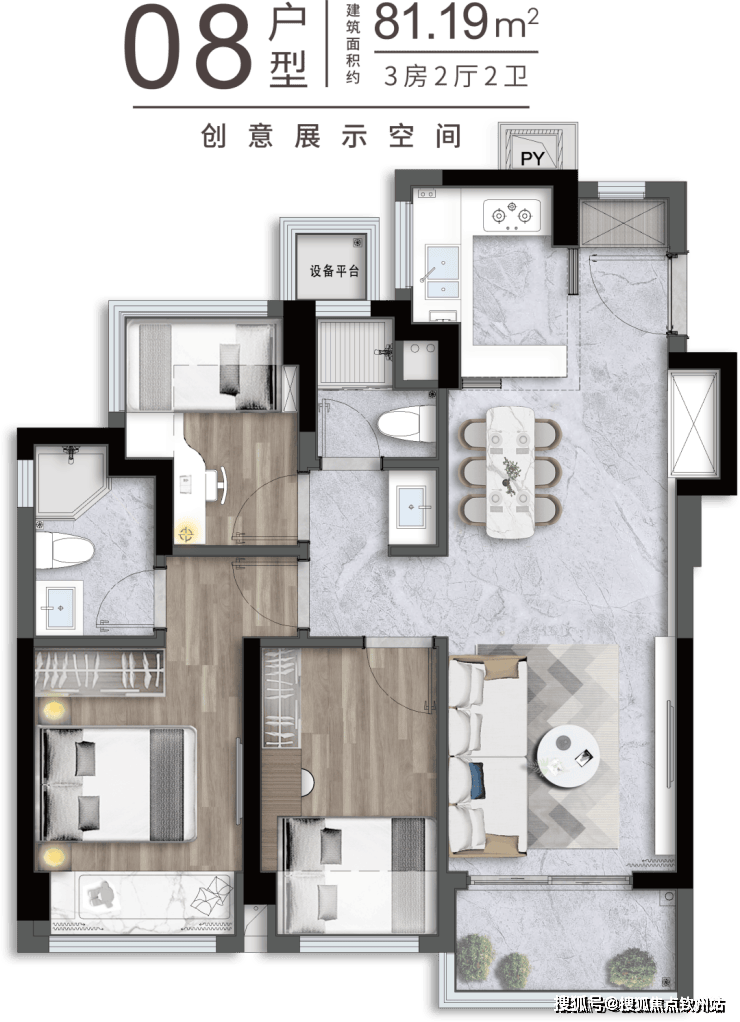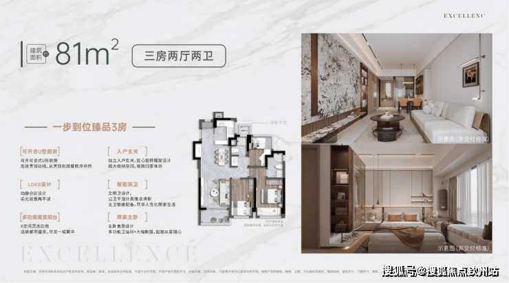 :81㎡左右户型,奢阔空间,满足成长型家庭需求,高使用率 + 智能精装,颜值与实用兼备