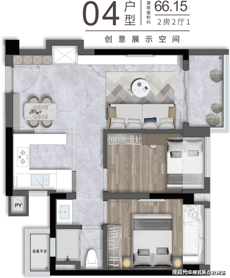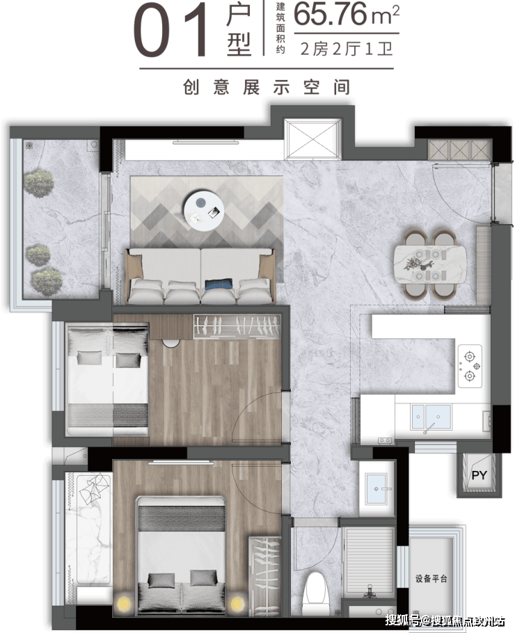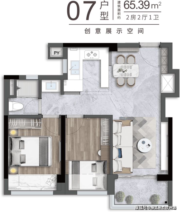 :65㎡左右户型,低门槛适配单身精英、二人世界、三口之家;