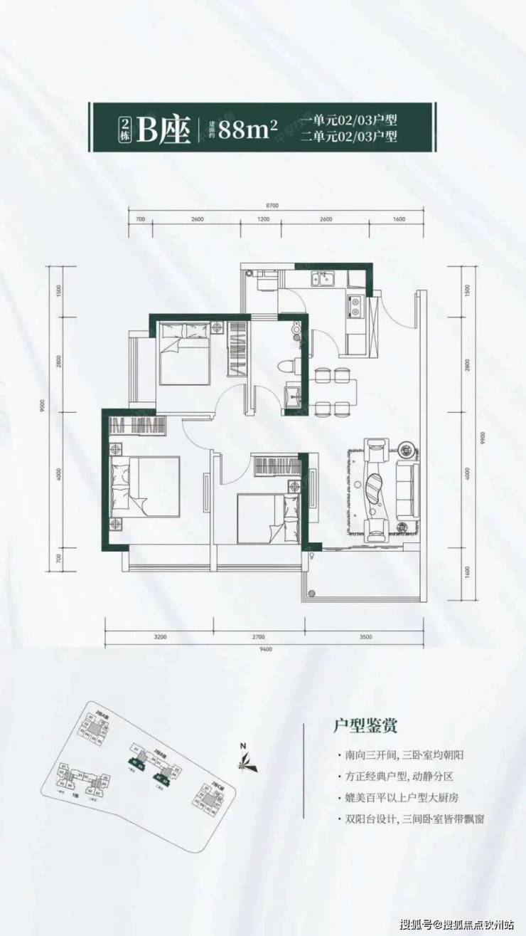 88㎡三房:南向采光,双卫设计,但厨房无生活阳台,实用性打折扣。