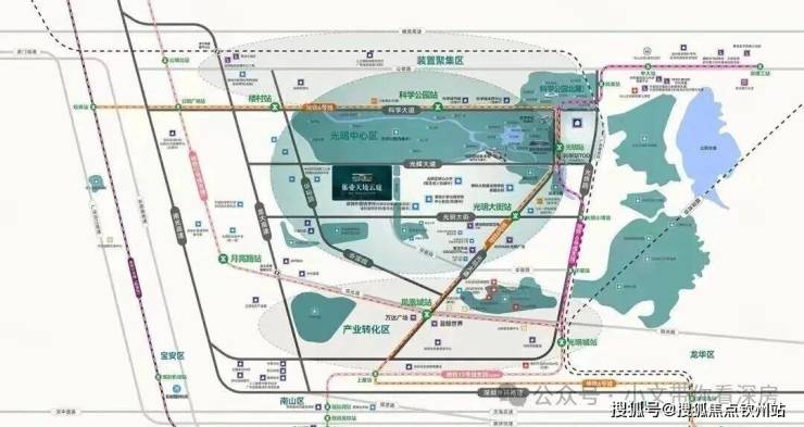 项目紧邻地铁 6 号线 “楼村站”,步行约 15 分钟可达;距光明站约 1.6 公里,步行约 22 分钟。依托地铁 6 号线,2 站直达凤凰城站可换乘 13 号线,4 站至光明城站可换乘高铁或 6 号线支线,6 站抵达宝安上屋站,11 站直达南山西丽留仙洞,14 站至南山高新园,18 站通达后海,通勤出行高效便捷。