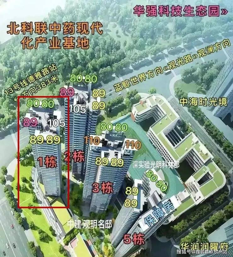 旁边就是润曜府、润晖府,东侧是待建的深实验光明科林部,不过观玥名邸靠着观光路,离13号线的德雅路站更近,仅300米左右!