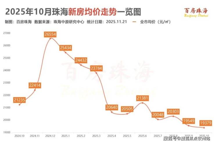 根据珠海中原研究中心统计,2025年10月珠海全市新房均价为19379.07元㎡,环比下降0.87%,同比下降8.74%。