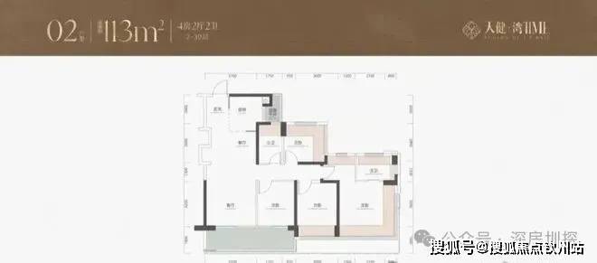 113㎡4房2卫:布局也很类似瑧誉府同位置的的123㎡4房,厨房外带设备平台可做生活阳台,北向的次卧面积更加适宜,还采用了双面飘窗。