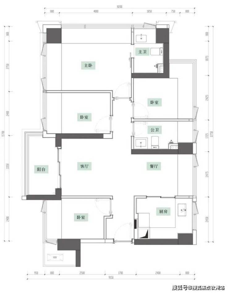 建面约93平户型,高实用率,在功能上做到了4房2厅2卫,在舒适度上做到了4开间朝南、约11.7米采光面、双飘窗全明主卧,完全能满足一步到位的置业需求。