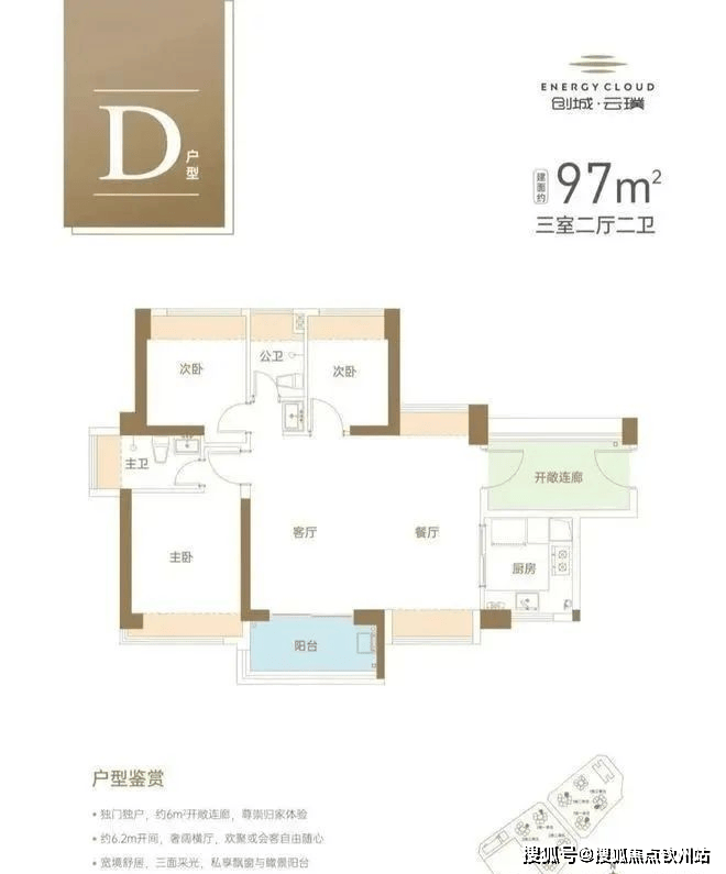 建面约97㎡独门独户3房2厅2卫,三面采光设计,室内阳光超长待机,约6.2m大开间横厅,出入步履无拘。
