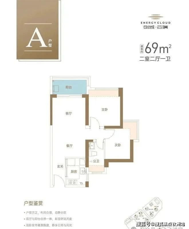 建面约69㎡舒适2房2厅1卫,全明采光,双卧室带瞰景飘窗,多维收纳空间,让收纳无忧。