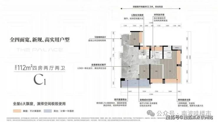 亮点1:客厅270度采光设计,客厅更是采用了当下最流行的设计风格「无主厅化」,而且客厅的凸窗进深达到了80CM。