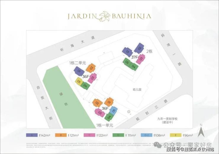 小区有485套纯住宅,车位595个,容积率5.14,共有三栋住宅,每栋做了36-37F高的4梯5户设计,每户都有专梯入户空间。