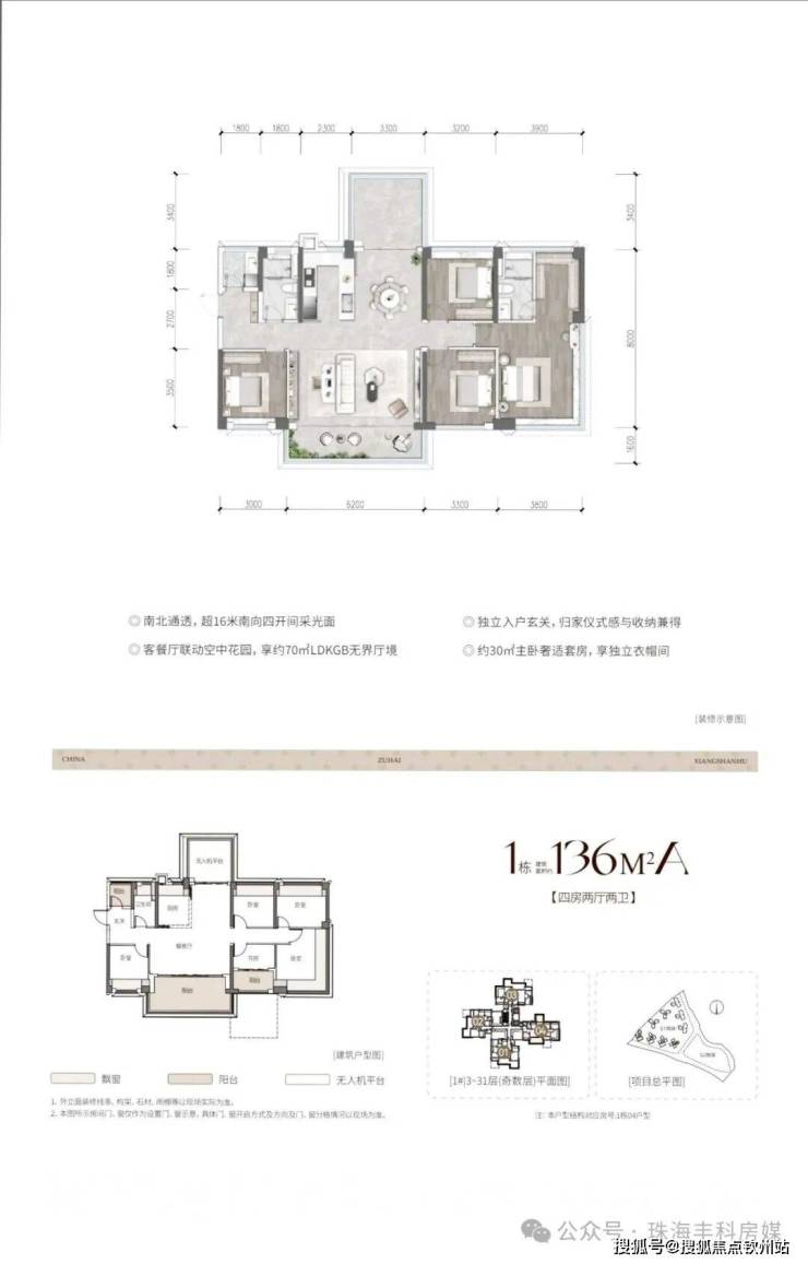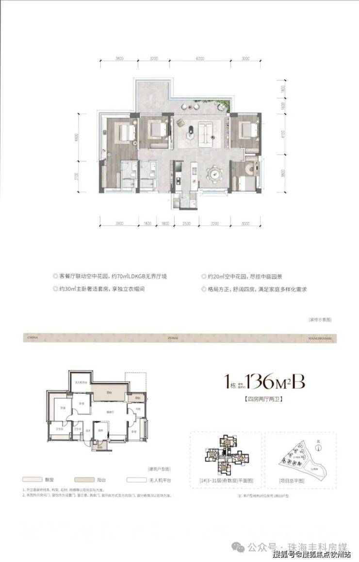 作为珠海市“四化”新型住宅试点,达到智慧住宅三星级标准,每户配备3m×3m无人机物流投递平台(不计入产权面积)。