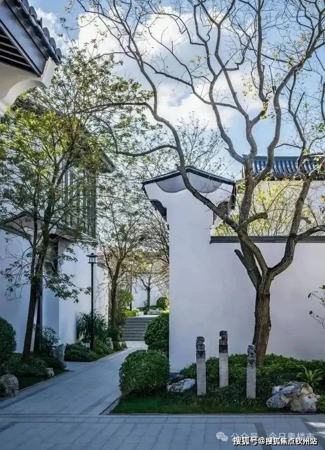 巷道深处,苍劲枝干探出院墙,高矮不一的绿植搭配自然景石,融入了曲径通幽、山重水复、柳暗花明的东方美学。
