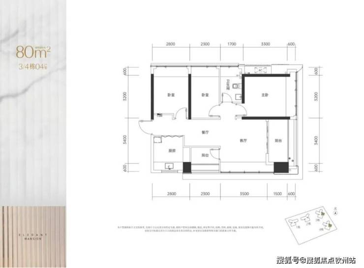 80㎡的3房2厅1卫,3/4栋04户型,设计的是竖厅格局,客厅4米开间+飘窗处,LDKB一体化设计,客厅双面采光,3个卧室分别做到了主卧12.18㎡/次卧9.16㎡/次卧8.1㎡(实测面积,去掉墙体),U型厨房,卫生间干湿分离,得房率约104.5%(包含赠送),东南朝向。