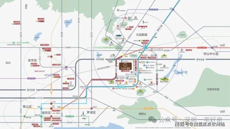 周边坐拥3-14-16号线,一站抵达大运交通枢纽,5站罗湖,6站福田,大运站可换乘深大城际(建设中),未来7站可达机场东,快速通往西部。水官高速(约800米)、龙岗大道、红棉路、沈海高速、龙翔大道。