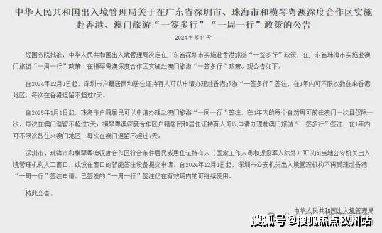自2025年1月1日起,横琴粤澳深度合作区户籍居民和居住证持有人可以申请办理赴澳门旅游“一签多行”签注,在1年内可不限次数往来澳门地区,每次在澳门逗留不超过7天,一签多行” 便利政策的实施,将促进琴澳两地文旅资源进一步融合发展