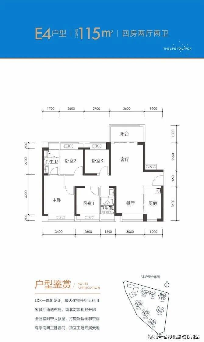 其中115㎡与126㎡外形结构与内部功能间布局基本一致,126㎡户型可看作是115㎡户型的放大版,都是竖厅、动静分区的,居住舒适性、实用性、通透性、静溢性各方面都比较好。