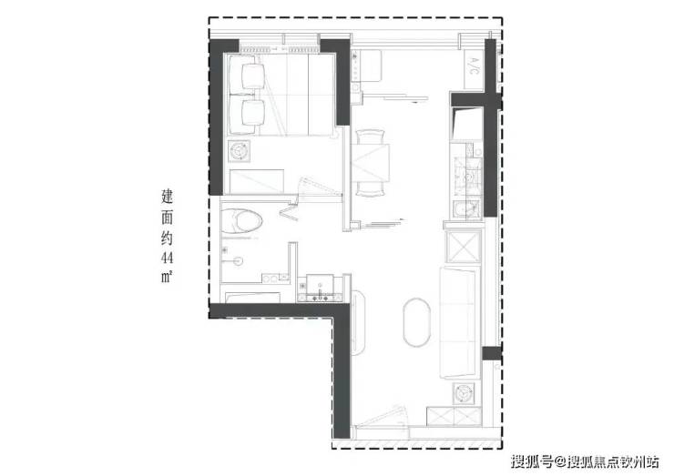 44㎡1房总价:280-300万 单价6.3-6.8万