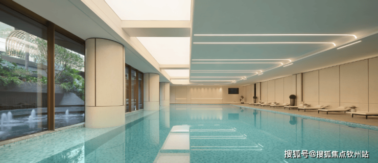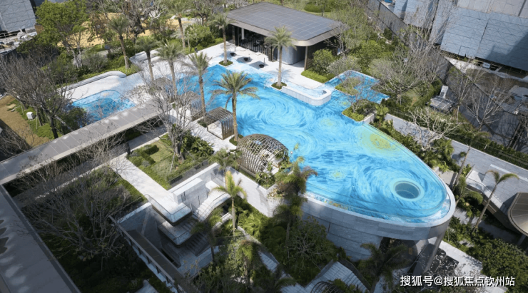 华发·珠海湾以新加坡樟宜机场立体园林为灵感,将同款园林复刻到珠海,约150米景观中轴采用盆景式花境栽植手法,搭配全冠移植热带、亚热带乔木,打造莫奈花园般度假感酒店园林,约8.6米泳池飞瀑倾泻而下,野趣满溢,自成画境。