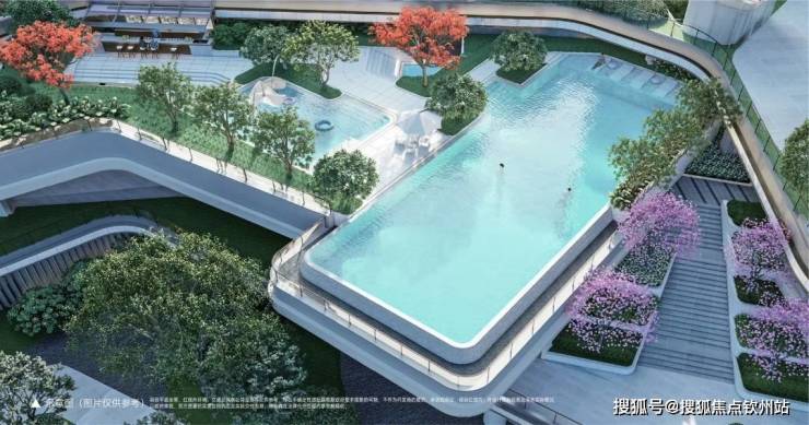 • 景观会客厅、悬浮无边界泳池、多元主题空间、全龄游戏空间、酒店式环岛落客区及无雨归家动线