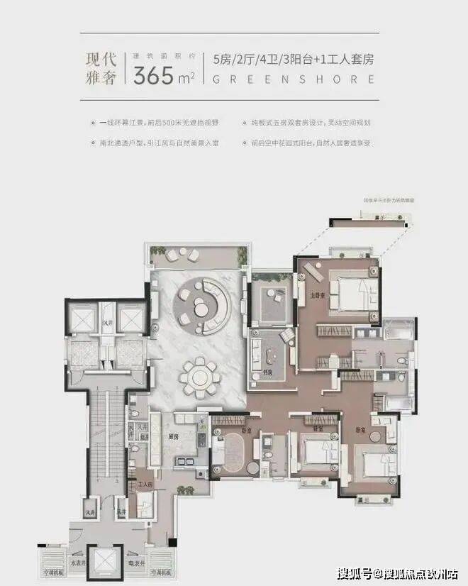 约365㎡5房双套房|2厅|4卫|3阳台+1工人套房