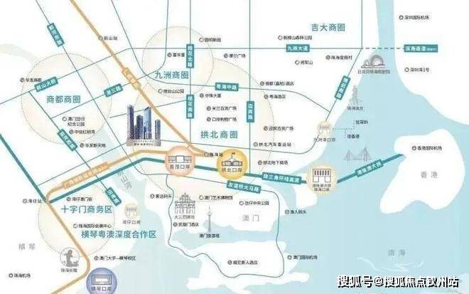 珠海与澳门极点桥头堡,扼守双城风云际会的湾区之内。眼前是前山河的锦绣、澳门城的璀璨,亦是珠海的繁荣,天赋区域,成就珠海CBD坐标级作品。