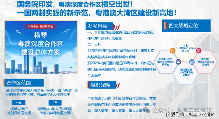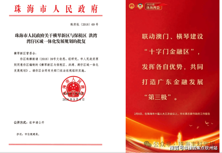 规划横琴一体化片区、双中心等位,南中心横琴金融岛定位商务中心,北中心十字门定位生活居住区,承载横琴居住人口,2022年规划十字门金融区,打造广东金融“第三极”,再次迎来发展机遇