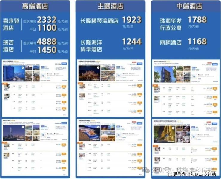 新春、国庆、节假日、旅游旺季一房难求,酒店入住率高达80%,租金达 800-1500元/天起,喜来登、瑞吉酒店房价高达1500-2500元/天起,周边高溢价租金带动项目投资回报稳定提升,珠澳CBD国际星级酒店集群,近80%年酒店入住率。长隆酒店5000套住房一房难求,租金高达800-1500元/天,喜来登、瑞吉酒店房价高达1500-2500元/天。节假日更是水涨船高,供不应求。
