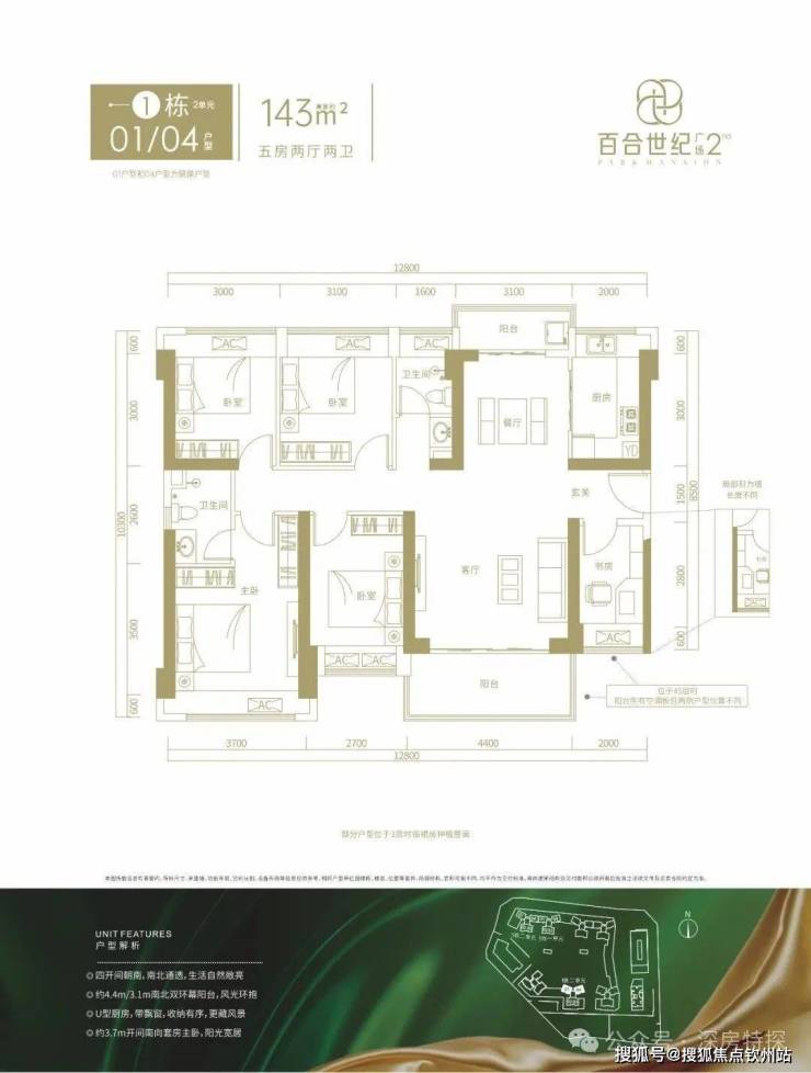 143㎡的5房2厅2卫,折后总价811-990万/套,单价5.69-6.94万/㎡。