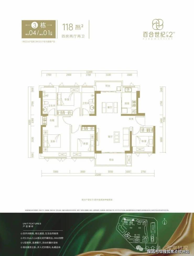 118㎡的竖厅南北通4房2厅2卫,折后总价638-702万/套,单价5.43-5.97万/㎡。