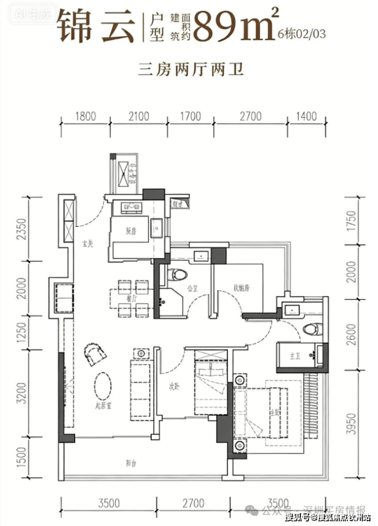 :经典竖厅格局,3.5 米客厅开间,LDKB 一体化设计,三开间朝南,主卧 + 次卧带转角飘窗,约 11.46㎡大阳台连通客厅与次卧,折后总价 364 万起,刚需上车优选。